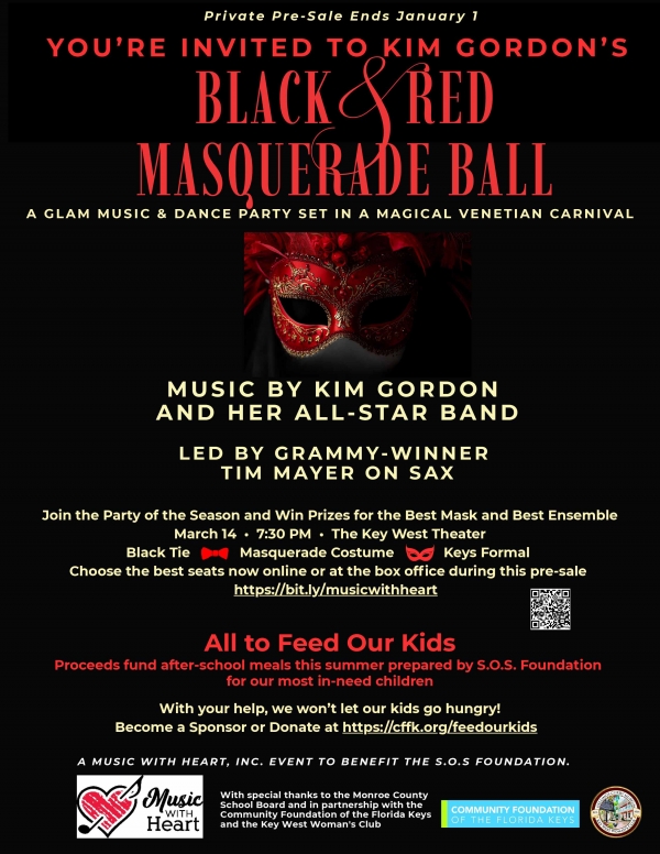 Not only was Kim Gordon: Let's Be Bad an extraordinary musical event complete with a packed house at the Key West Theater, it was also a rousing financial success for its recipient Take Stock In Children. Music With Heart donated close to $7000 to Take Stock In Children, which will be doubled by a match from the State of Florida, to provide scholarships for deserving, low-income kids from area schools.